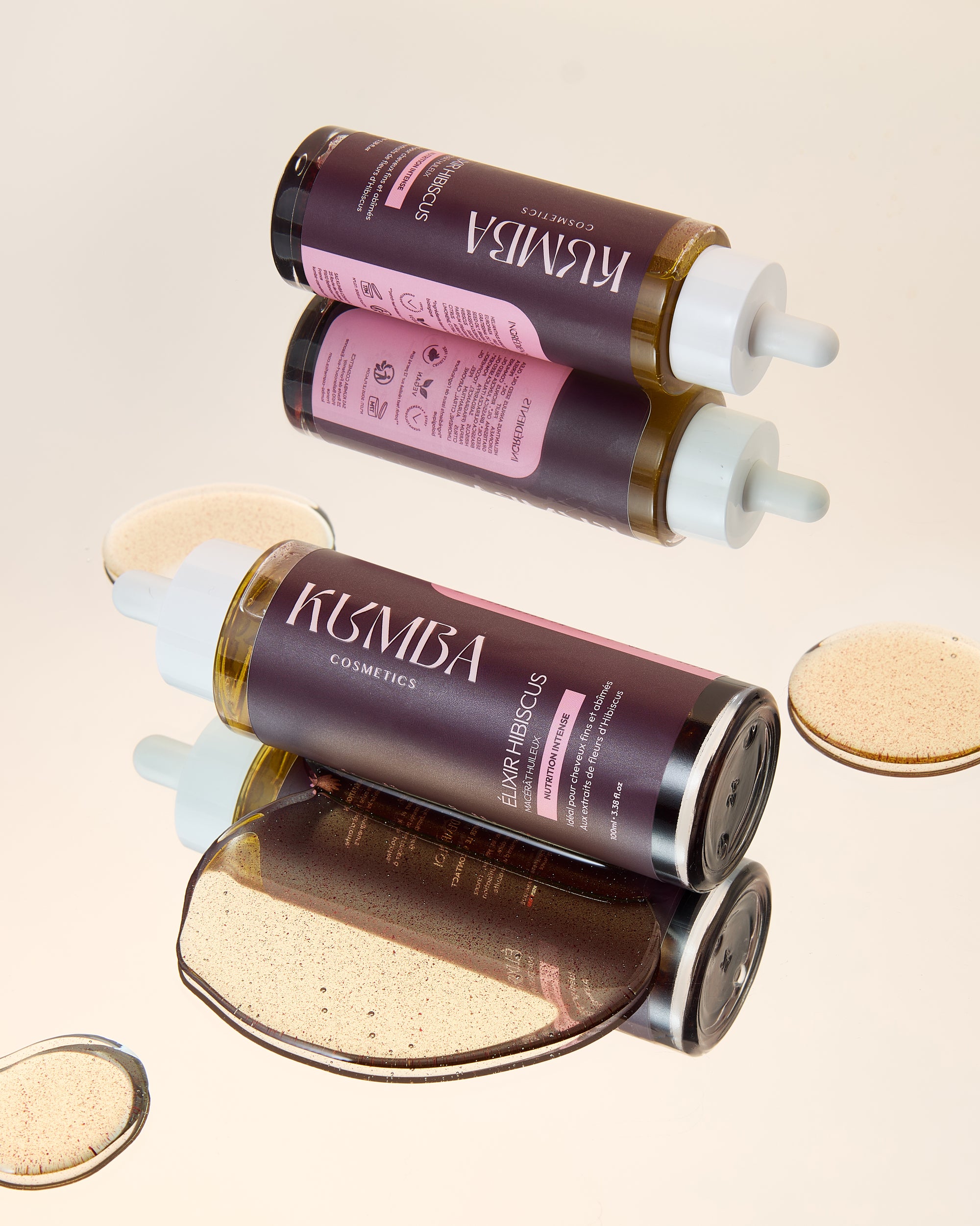 Chez Kumba Cosmetics, nous allons plus loin : notre Élixir Hibiscus – Huile cheveux bouclés est un véritable macérât huileux, obtenu par infusion lente de fleurs d’hibiscus dans un complexe végétal bio (olive, avocat, ricin, brocoli, moutarde).