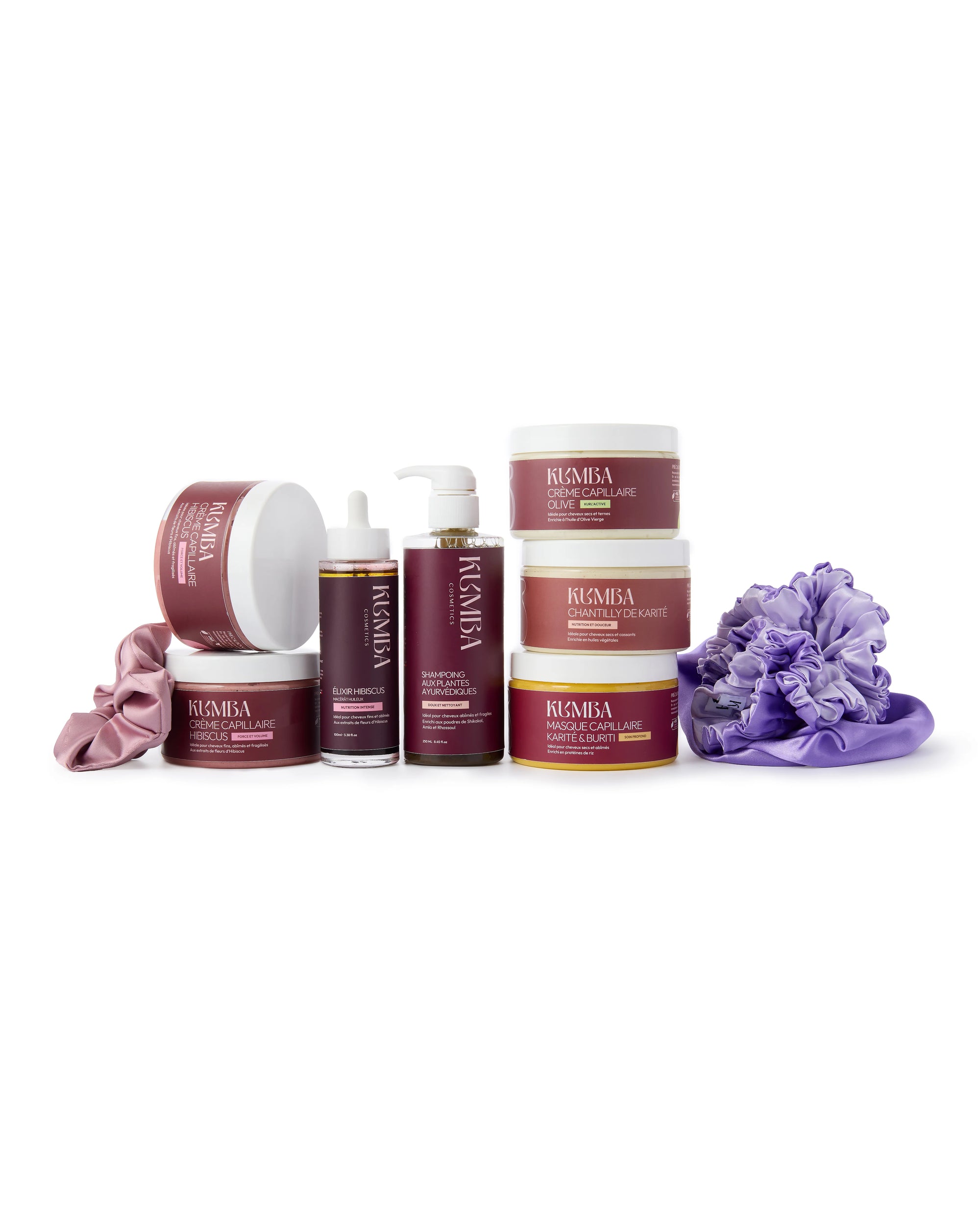Le Coffret d’Exception Kumba est une véritable expérience capillaire premium, pensée pour redonner force, éclat et vitalité aux cheveux texturés secs, fragilisés ou fatigués. Disponible en deux variantes ,Chébé pour retenir la longueur ou Hibiscus pour révéler un volume naturel, il réunit tout le nécessaire pour une transformation durable : shampoing ayurvédique doux, crème capillaire Olive hydratante, crèmes Chébé ou Hibiscus, élixir végétal, masque Karité & Buriti, chantilly de karité et même des accessoires en satin pour prolonger les effets la nuit.